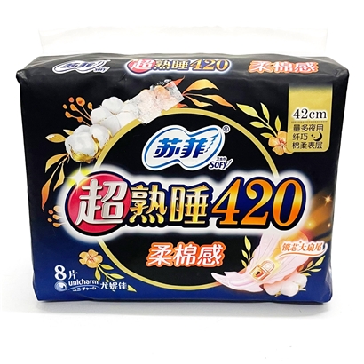 苏菲超熟睡420棉柔夜用卫生巾42cm*8片/包  |